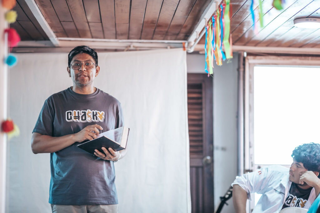 REFLEXIÓN: Me desperté alrededor de las 5:00 a. m. No pude resistir la oportunidad de ver el amanecer sobre el río Ucayali. Fue muy tranquilo. Tuve algunos momentos increíbles durante la semana, pero esas mañanas tempranas fueron algunas de las mejores. Fue increíble para mí cómo las señoras en la cocina preparaban tanta comida y la servían tan rápido. Increíble. La tarde en el campo donde se jugaron los juegos fue una maravilla. No pude entender todo lo que se dijo, pero hubo muchas risas, un sentido de “equipo” y una actitud despreocupada.