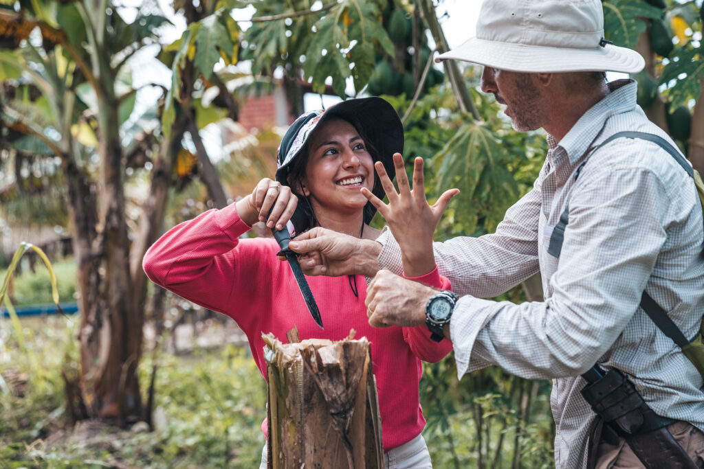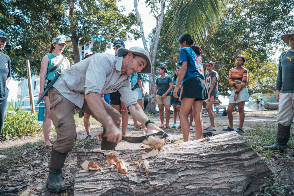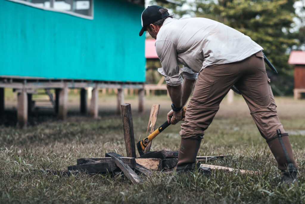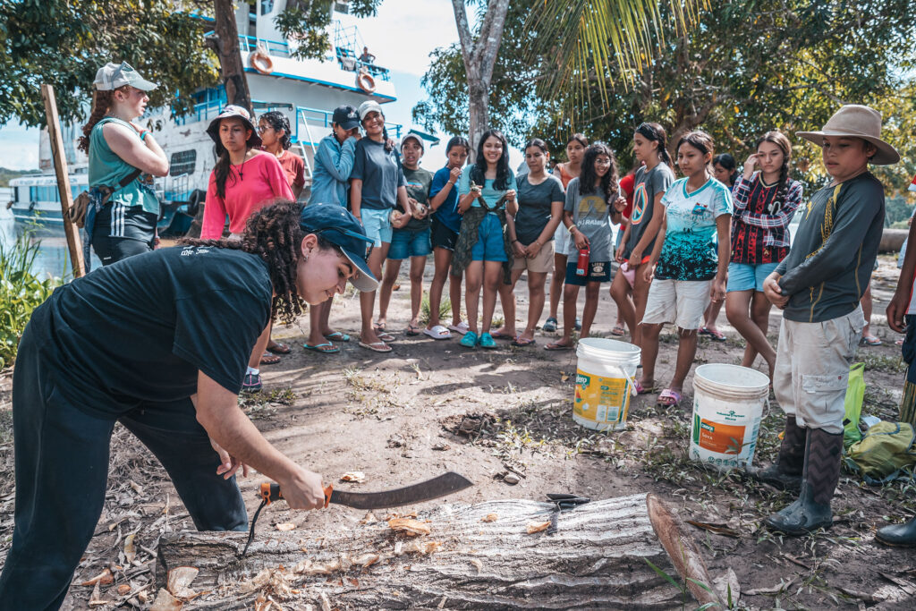 REFLEXIÓN: Sinceramente, no puedo creer que nadie perdiera un dedo ese día. ¡Jajajaja! ¡Volaban machetes! Pero el entrenamiento fue genial. Fue increíble ver el avión Cessna aterrizar justo donde estábamos atracados. Había volado en ese mismo avión hace 17 años y tomé fotos aéreas de otro. La fogata al final de la noche olía de maravilla. El humo de leña tiene algo que es bueno para el alma.